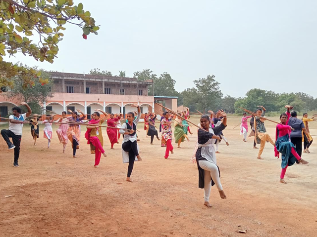 Every week we conduct silmbam class in our college. More than 50 students learn silambam. Silambam is a good form of cardio workout that improves blood circulation and heart function. It burns calories. Silambam helps in weight reduction and shaping of body, releives mental stress, laziness and fatigue. It improves body flexibility and reflexive movement of joints and muscles.